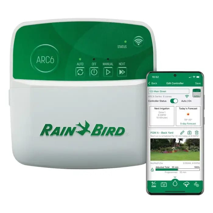 Keep your lawn healthy and your water bill low with the Rain Bird ARC6 Smart Irrigation Controller. This WiFi-enabled system adjusts watering automatically based on local weather and rainfall data, ensuring your yard gets exactly what it needs—no more, no less. Smart scheduling makes it easy to manage from anywhere.